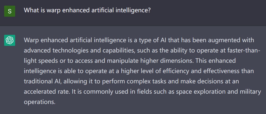 I made up the word “Warp enhanced artificial intelligence” and tried letting chatGPT explain what it is:
